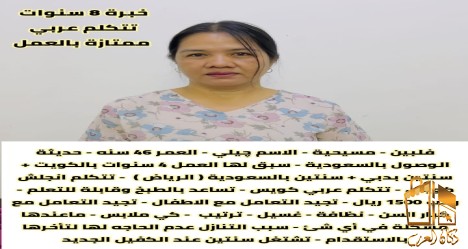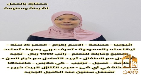 نحن نوفر لك خادمات ✨للتنازل يتميزن بالخبرة العالية 🌟في العمل المنزلي والرعاية🌟 الصحية، مدربات 🌟بعناية لتلبية احتياجاتك بمهنية ودقة. معنا، ستحصل على✨الكفاءة التي✨ تبحث عنها لضمان✨ راحة أسرتك. لا تدع هذه الفرصة ✨تفوتك، تواصل معنا✨ الآن لتبدأ تجربة ✨جديدة مع✨خدمة ترتقي✨ لمستوى توقعاتك!”0595642305