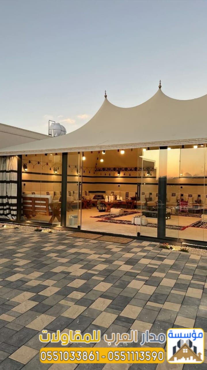 سواء كنت ترغب في خيمة زجاجية للحديقة، أو بيت شعر قزاز فاخر للاستراحة أو المجلس الخارجي، فإن فريق مؤسسة مدار العرب جاهز لتنفيذ مشروعك من التصميم إلى التسليم.