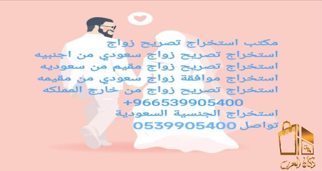 *استخراج تصريح زواج اجنبي من مواطنة سعودية ✳️0539905400الدفع بعدالانجاز تواصل واتساب (مكتب استخراج موافقه زواج)